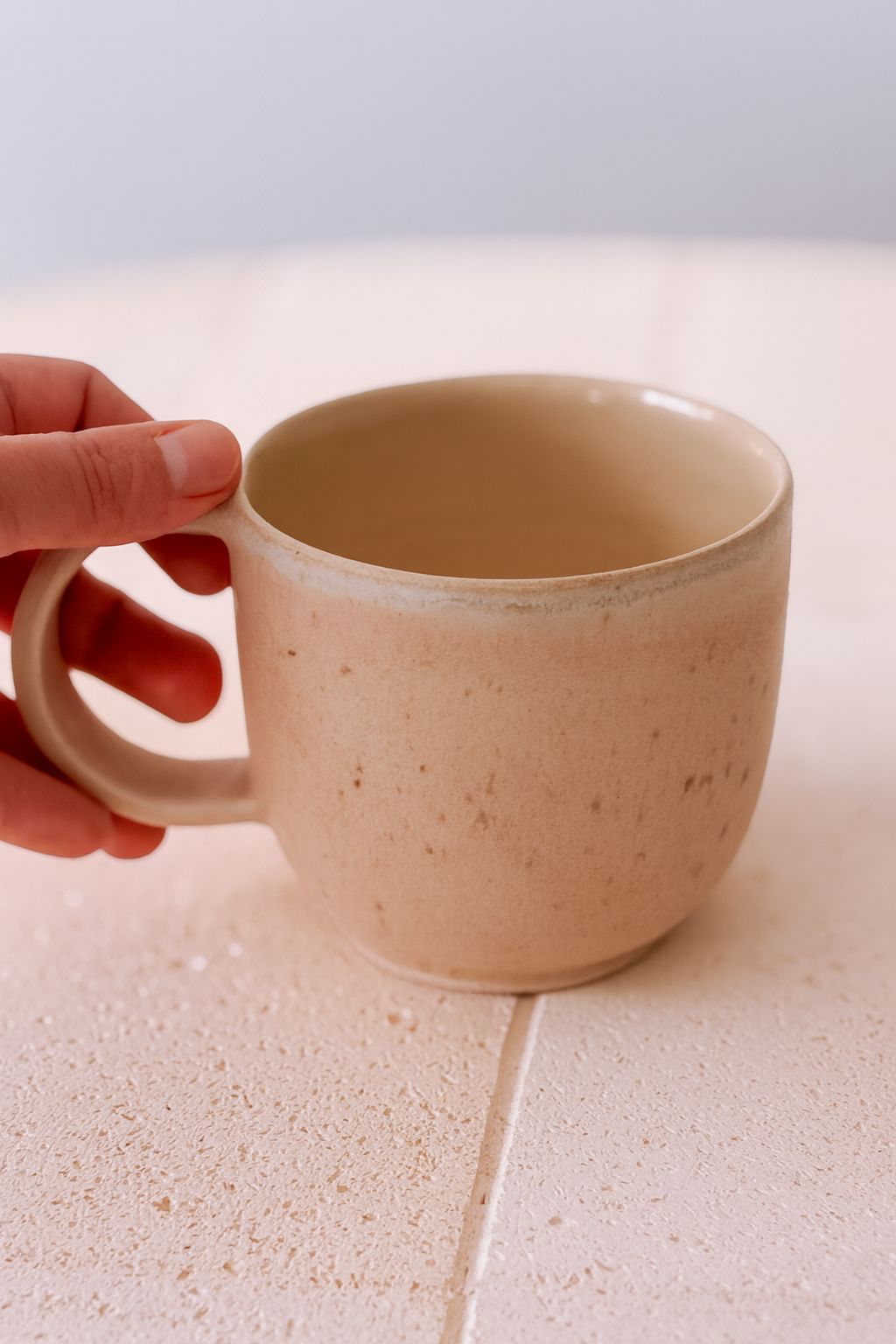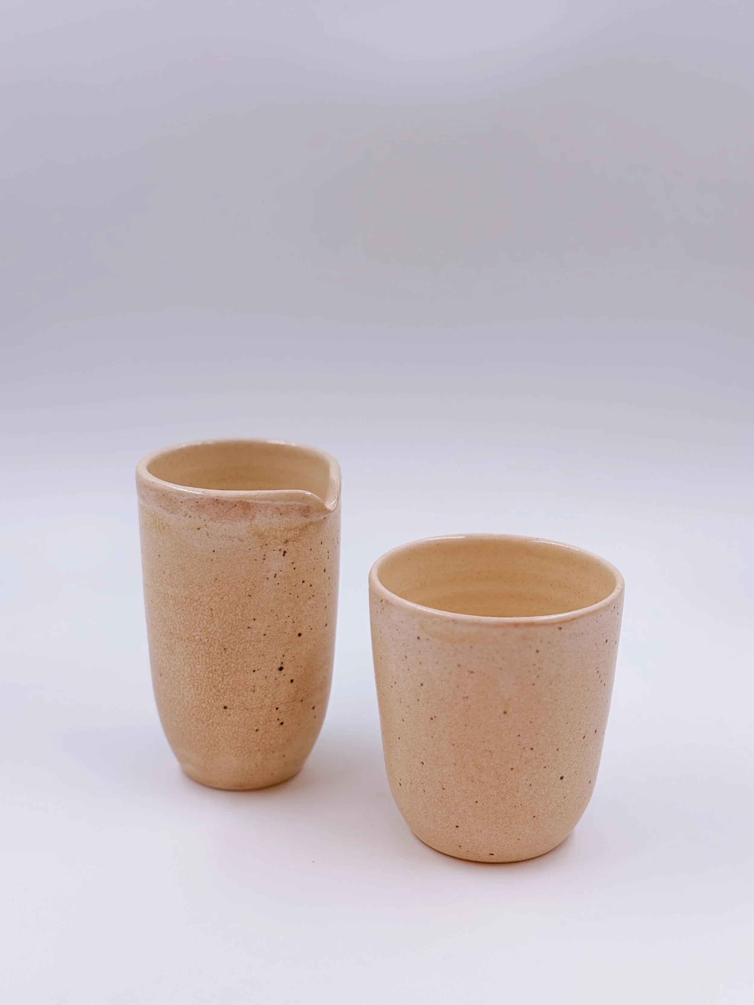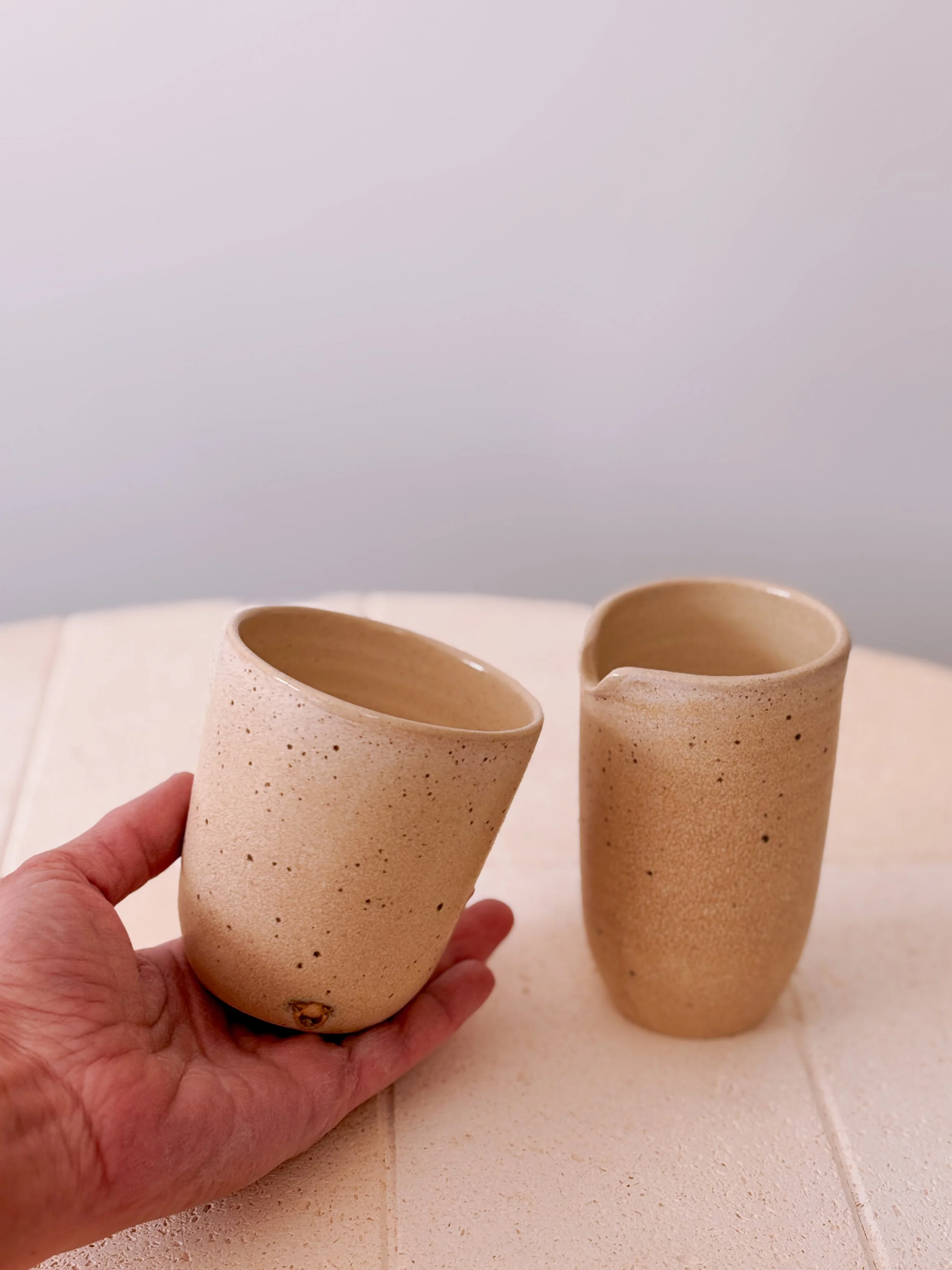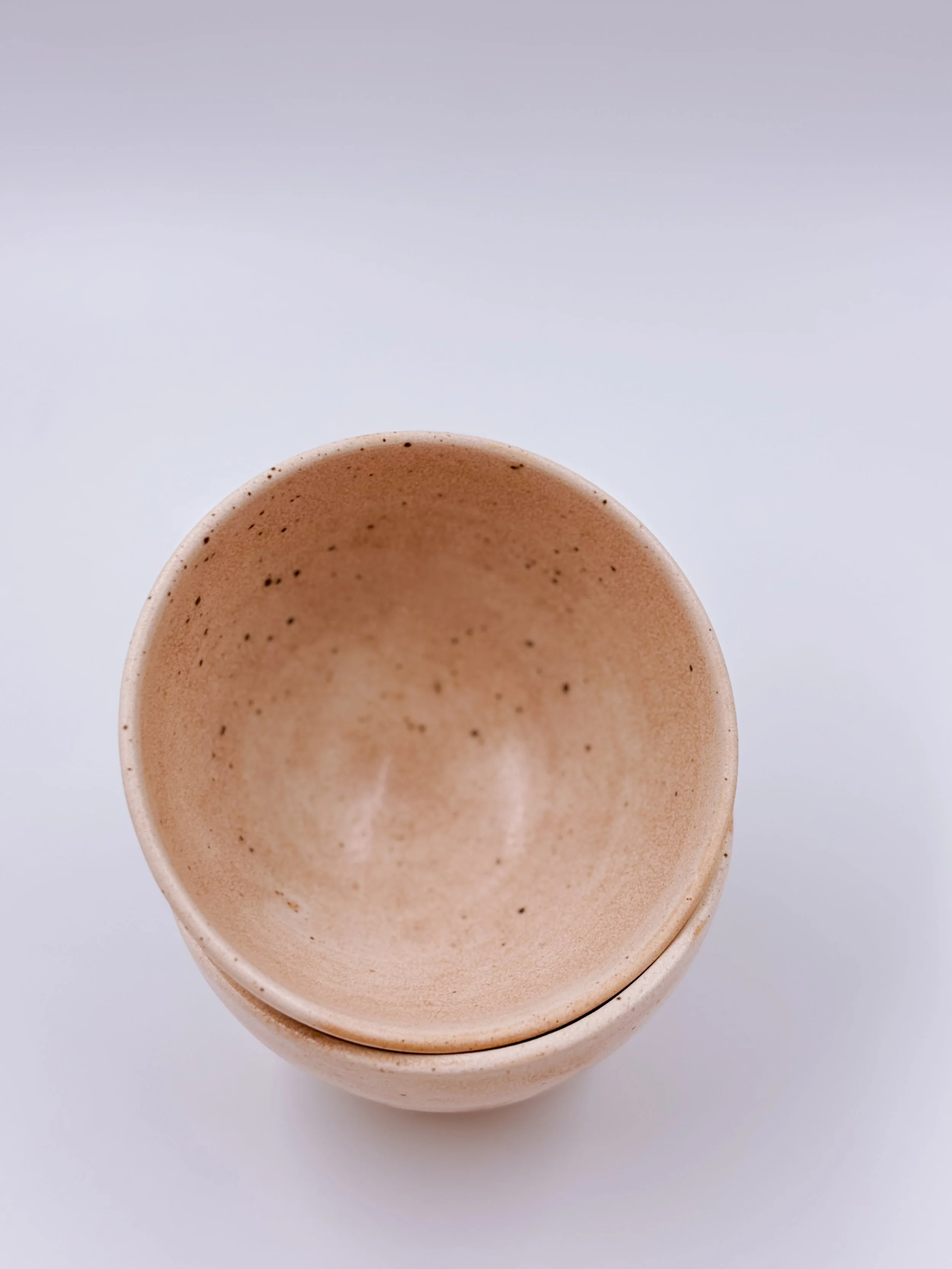 Taza sin Asa realizada al torno en gres blanco de alta temperatura.