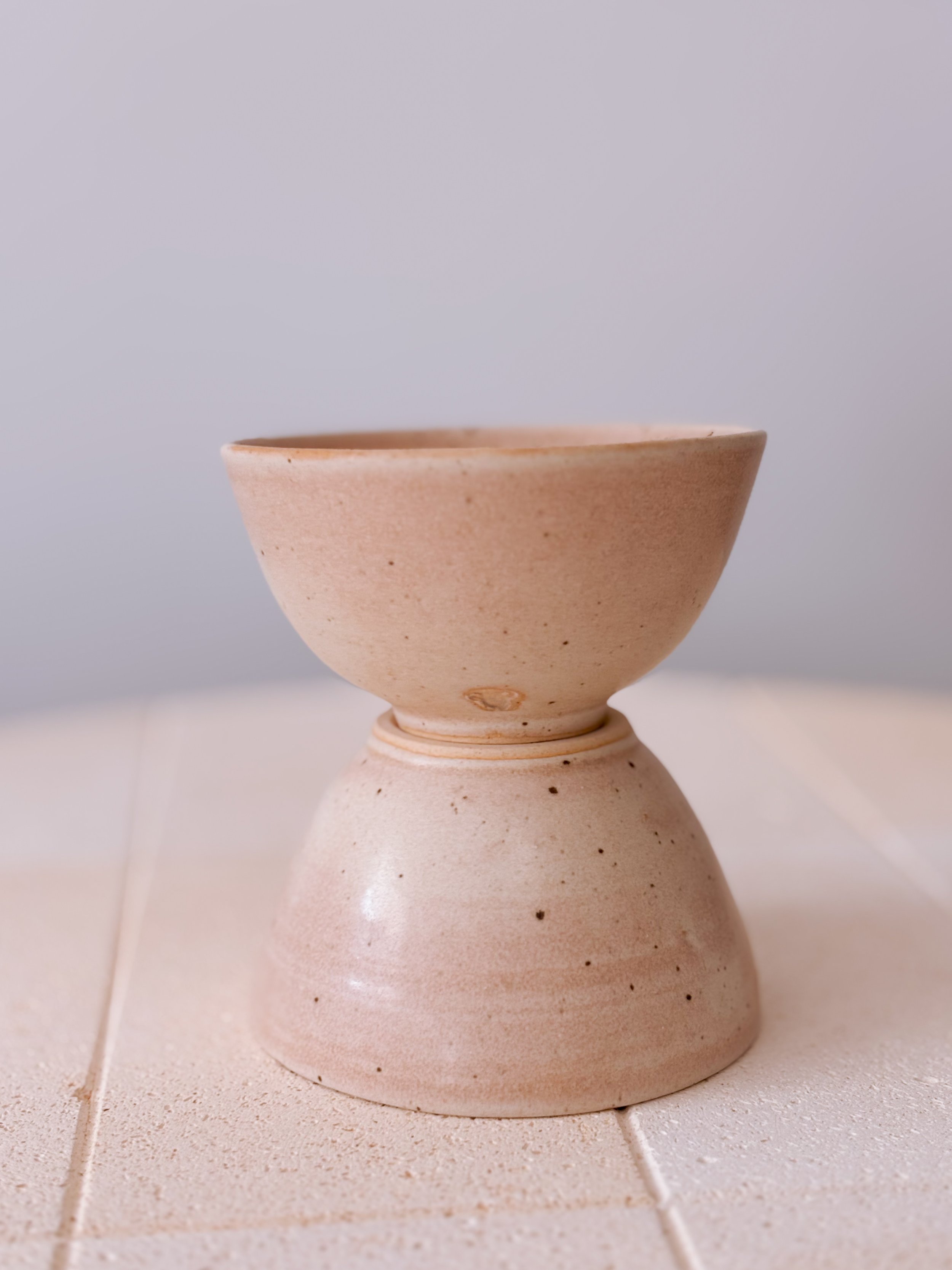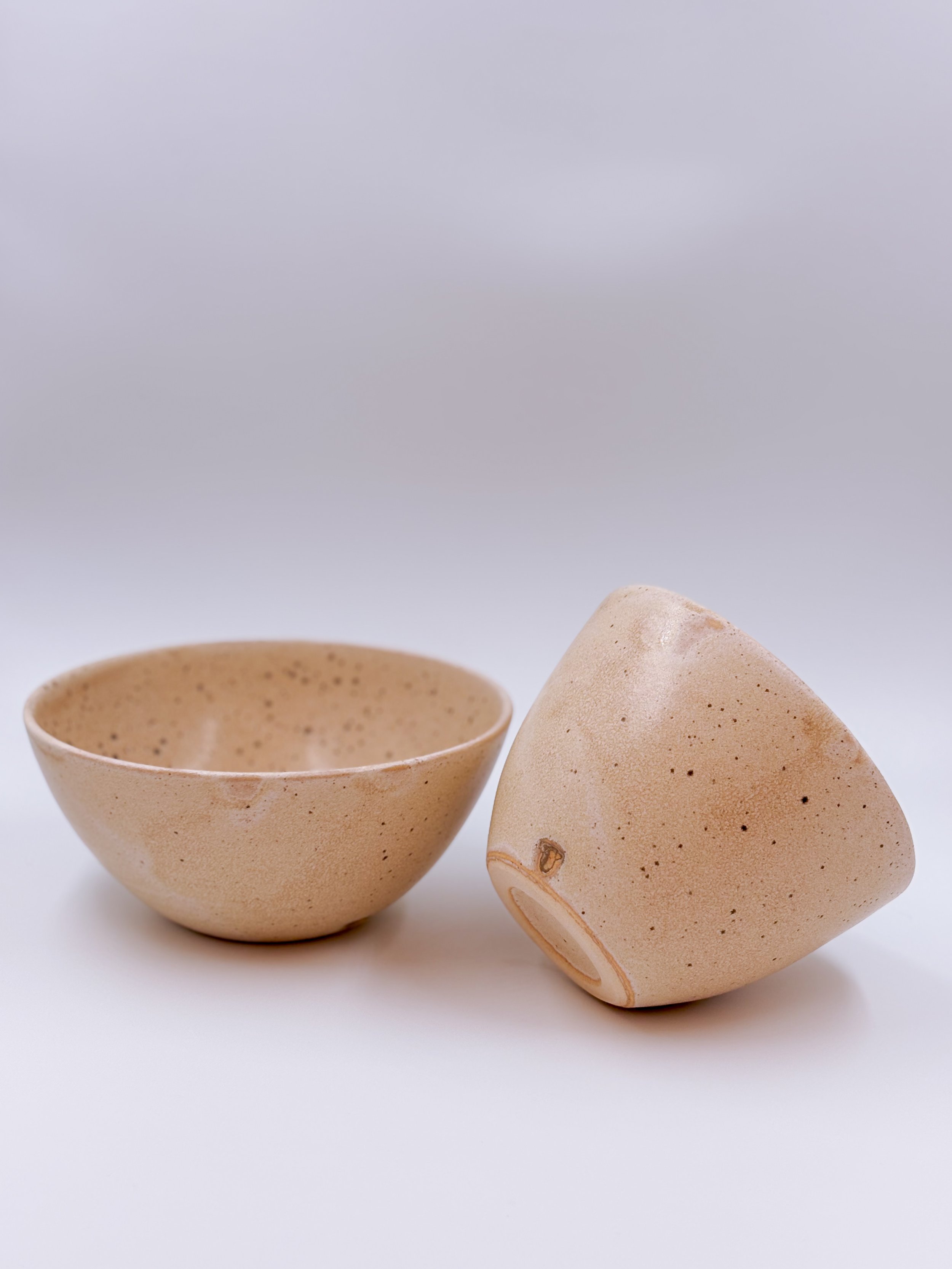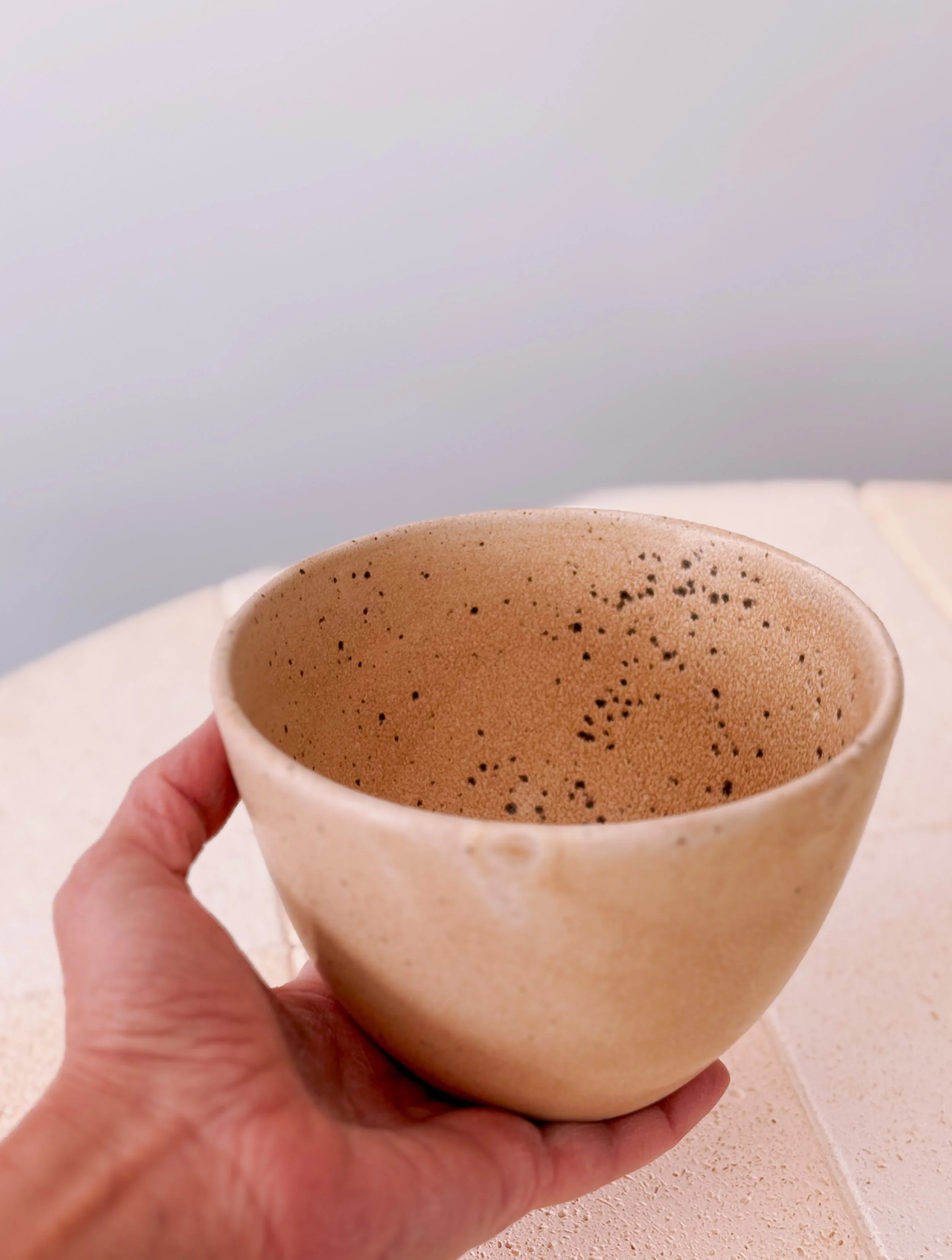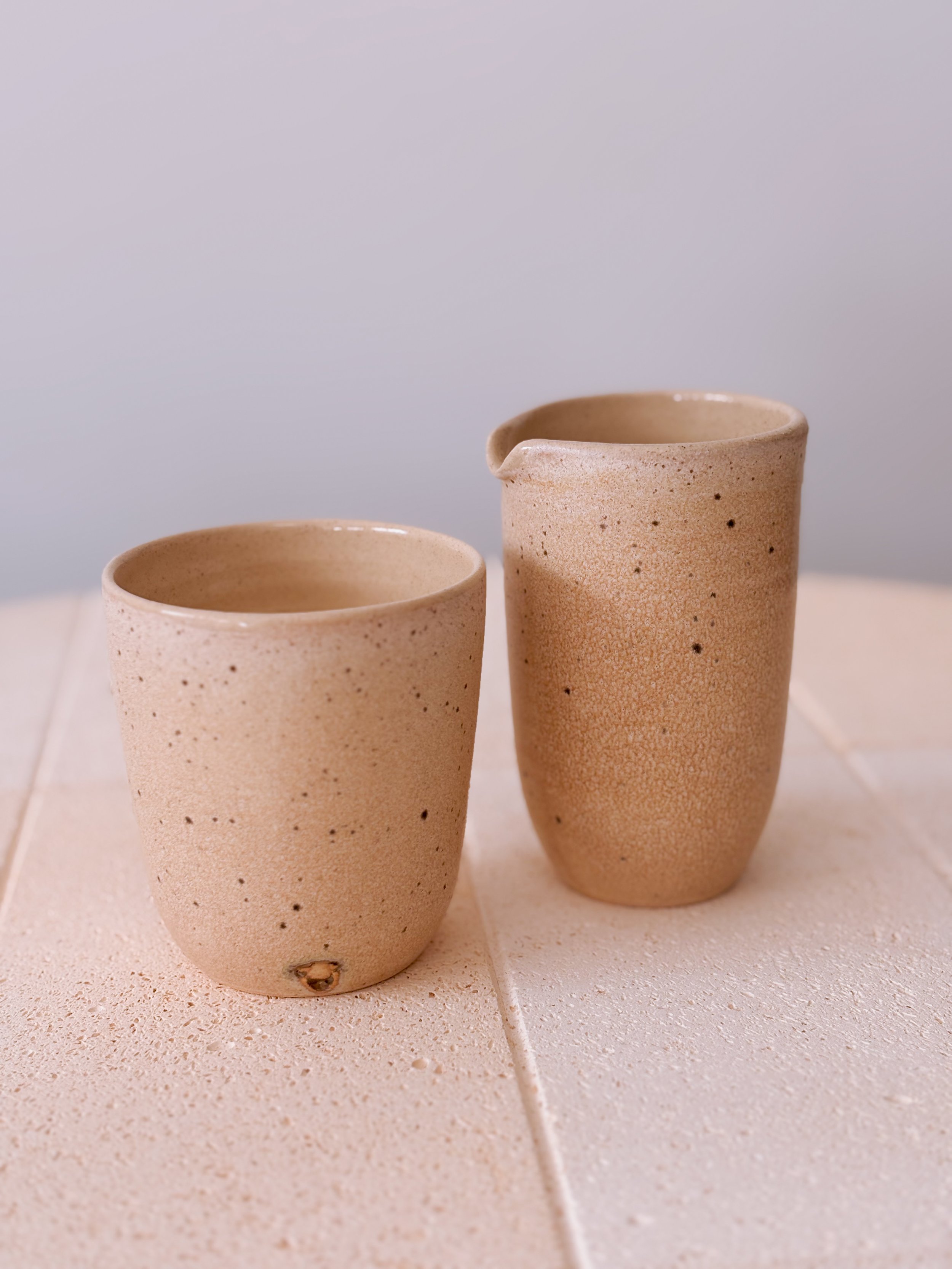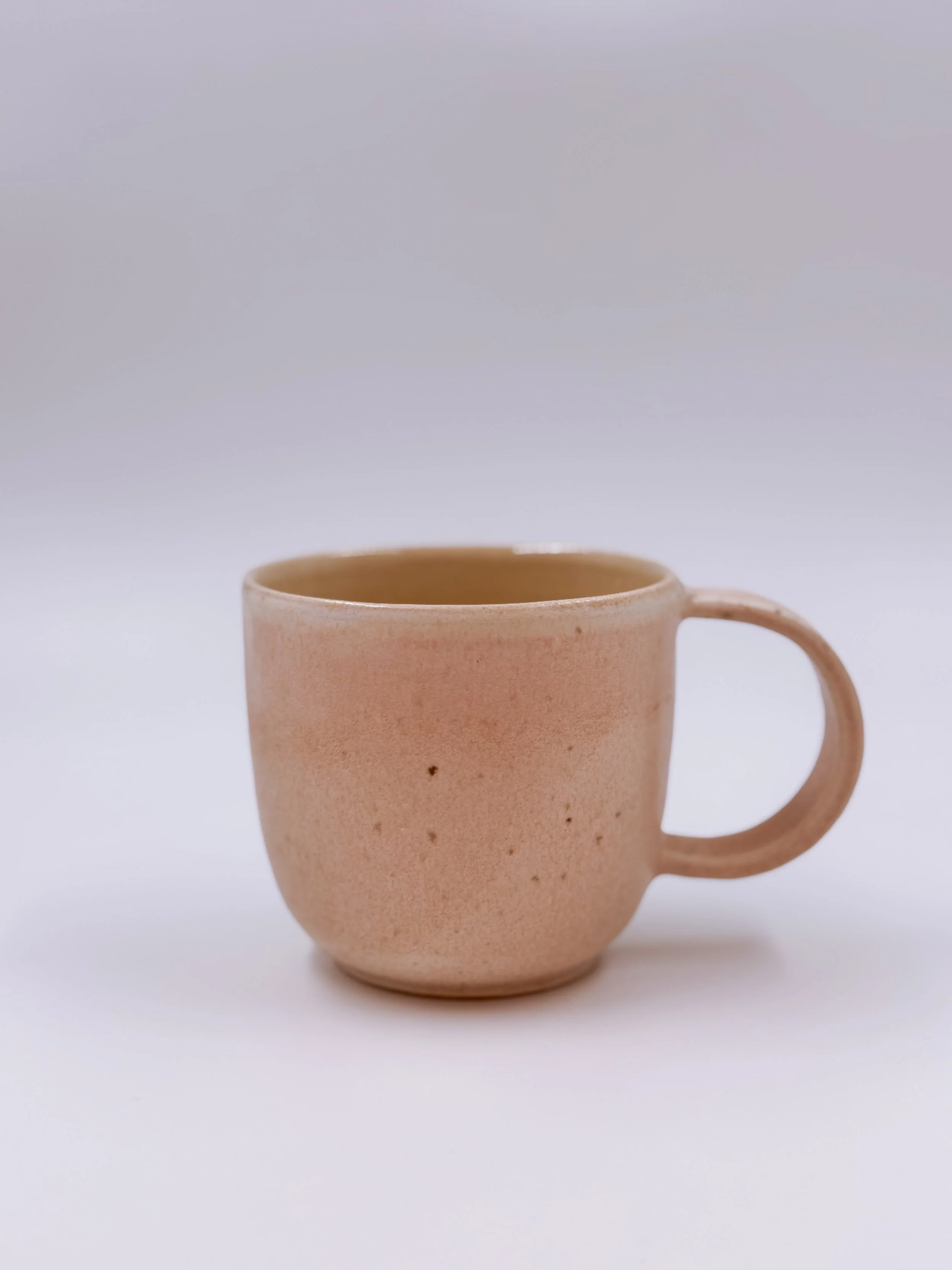 Taza sin Asa realizada al torno en gres blanco de alta temperatura.